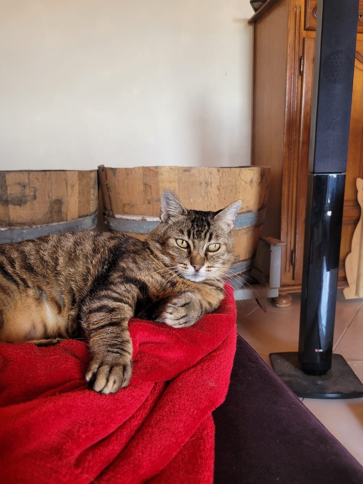 J'adore le confort d'une maison et dormir avec les humains. Je suis très propre, stérilisée et traité.