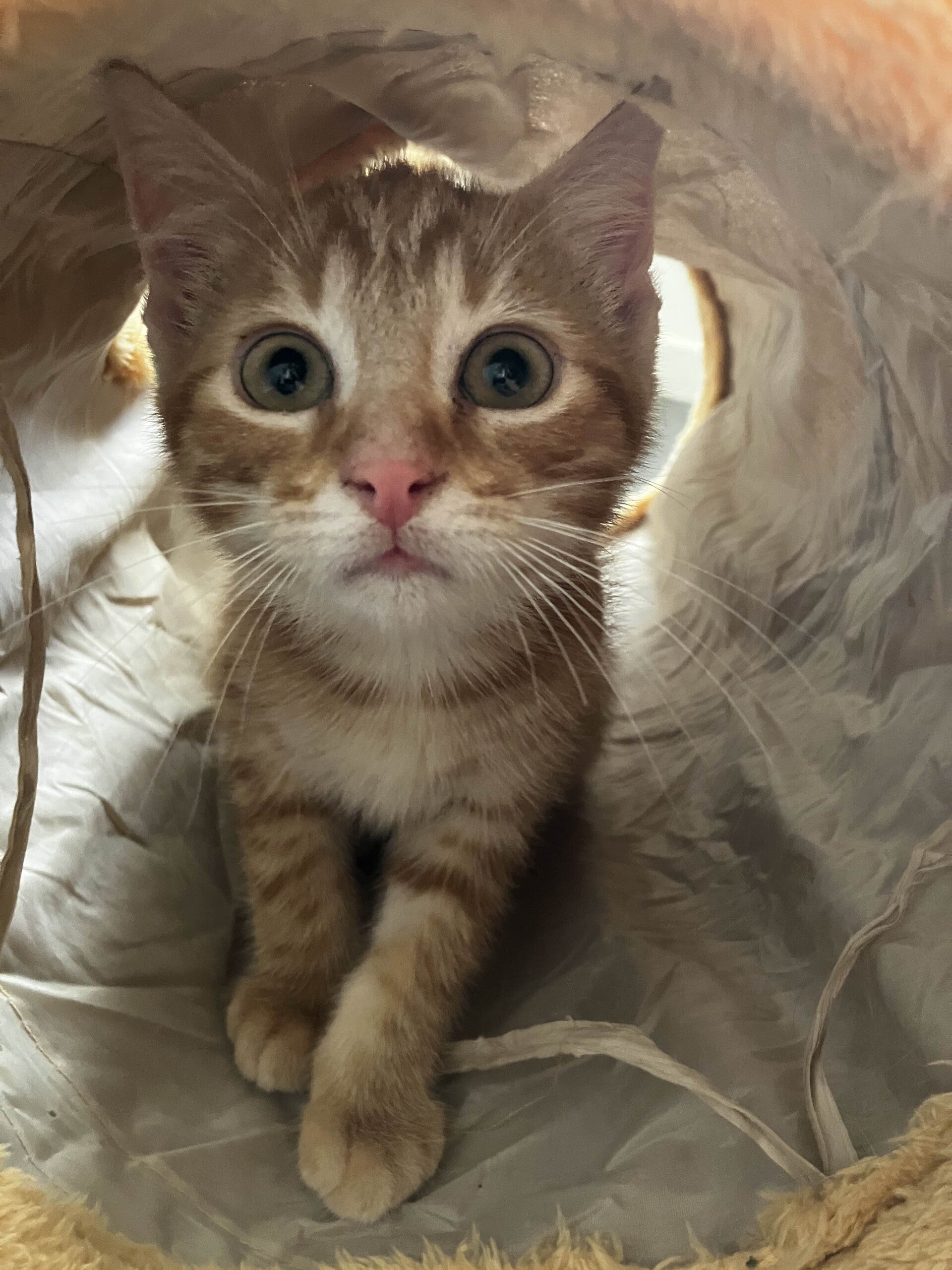 Joueur, il aime courir après les balles, se cacher dans les cartons, jouer avec ses compagnons ou encore attraper la queue du chien ! (parfois même la sienne).